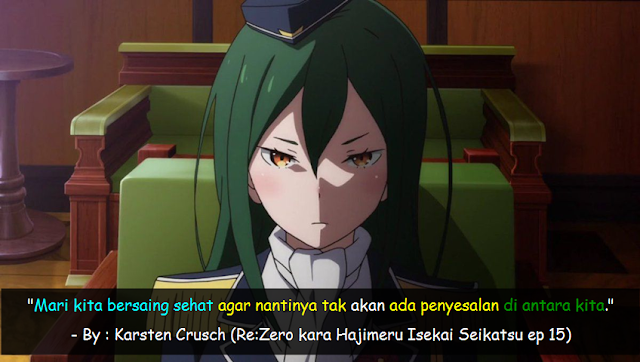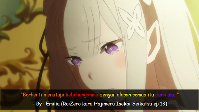 Selain karena ceritanya yang menarik terdapat beberapa kata-kata bijak atau Quote pada anime Re:Zero yang mungkin bisa menyentuh atau bahkan mengubah hidupmu.